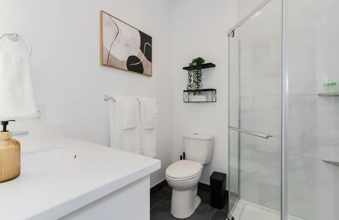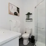 Die Zimmer im Casa Hotels Mccaul - New With Workspace & Kitchen verfügen über einen Patio, einen Flachbildfernseher mit Satellitenkanälen und WLAN. Neben einer begehbaren Dusche und einer getrennten Toilette gehören auch ein Haartrockner und Badelaken zur Ausstattung des Badezimmers.